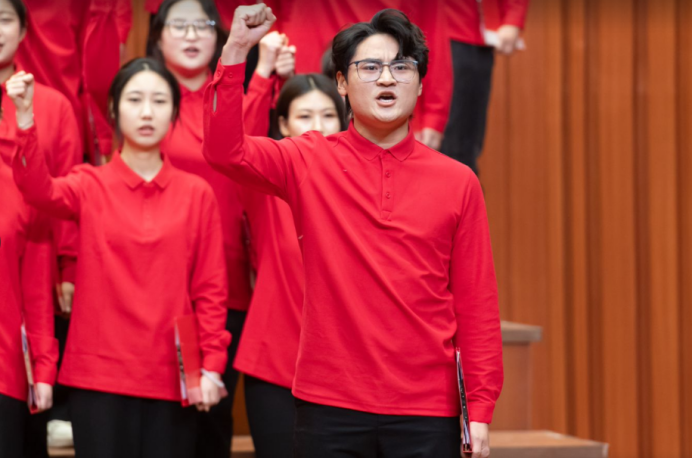歌声时而铿锵有力,再现烽火岁月的壮怀激烈;时而深情婉转,抒发对祖国山河的无限热爱;时而昂扬奋进,表达新时代青年砥砺前行的坚定信念。特别是音乐学院专业合唱团的倾情展演,更以高水准的艺术表现力,将现场气氛推向高潮。