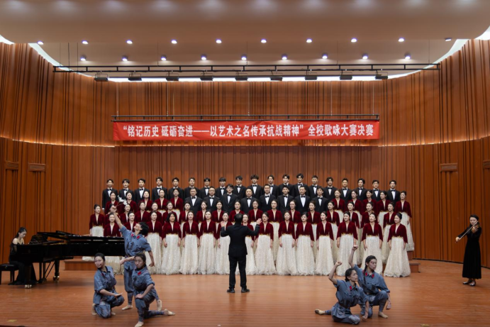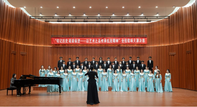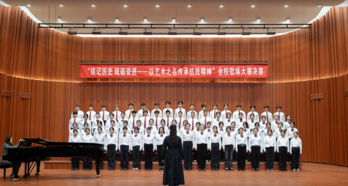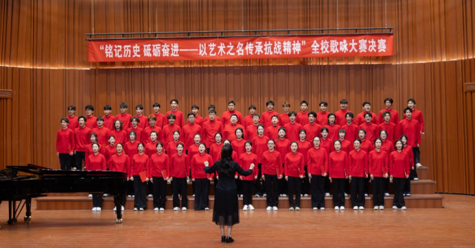 为纪念“一二·九”学生爱国运动,弘扬伟大抗战精神,12月9日,“铭记历史砥砺奋进——以艺术之名传承抗战精神”为主题全校歌咏大赛决赛在学校音乐厅隆重举行。此次活动既是一堂生动的爱国主义教育实践课,也是学校深化项目化教学改革、推动艺术实践与思政教育深度融合的成功探索。